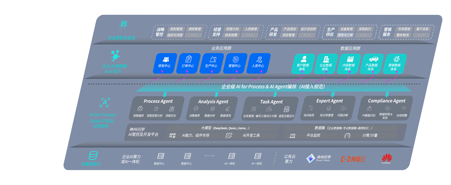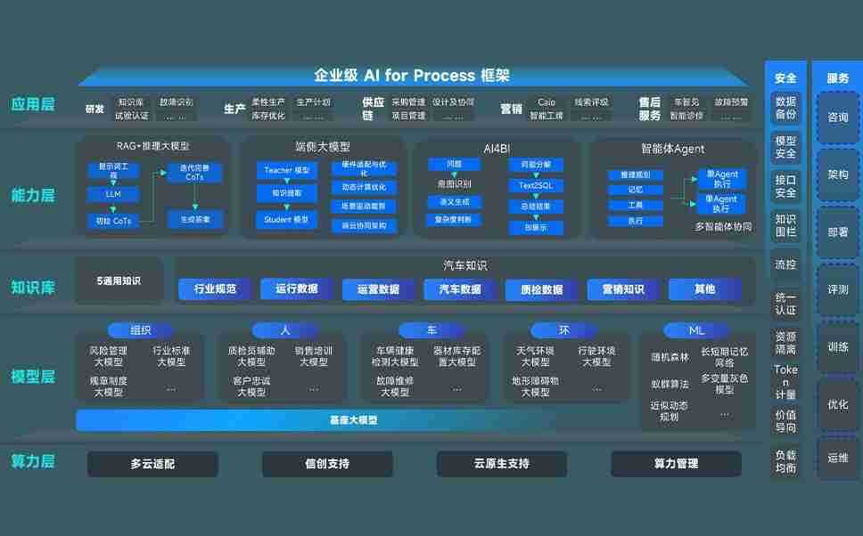 好彩客问学智车解决方案是一套基于AI技术的汽车行业智能化系统,,覆盖从底层算力到顶层AI应用的全栈方案。。方案由算力层、、、、模型层和应用层组成:算力层,,方案支持多种一体机配置,,,,具备云端灵活部署、、、、多云适配以及动态优化计算资源的能力;模型层,,,好彩客问学平台版提供了企业级AI应用一站式构建与管理平台,,,支持基于后训练强化技术的汽车企业专属模型的训练、、评测和运营;应用层,,,好彩客问学DeepSeek版提供包括超级员工、、、、智能招采、、、智能营销、、、、智能客服、、、、AI for BI等一系列解决方案,,可助力汽车行业实现数字化转型,,,让管理更智能、、响应更敏捷。。。。
